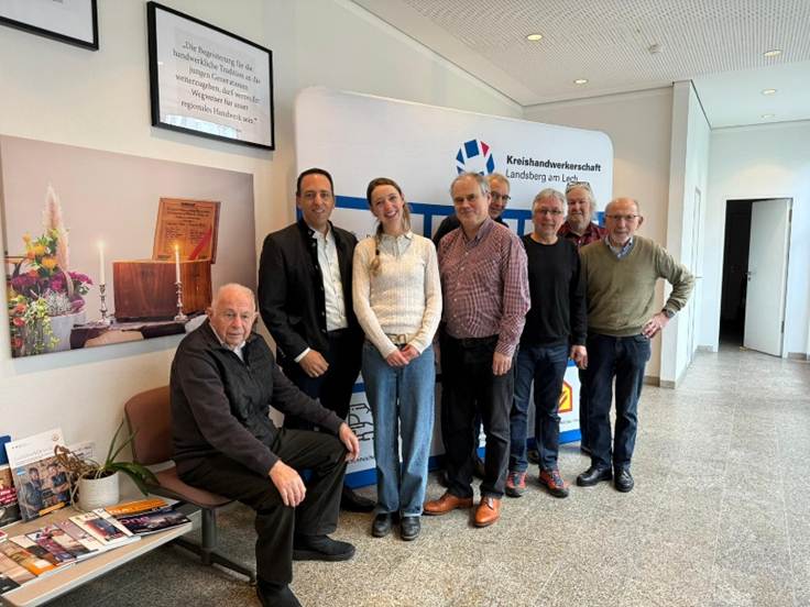 v. l. Heinrich Pflanz, Kreishandwerksmeister Markus Wasserle, Obermeisterin Luisa Bredschneijder, Reinhold Schlegel, Michael Schopf, Manfred Feneberg, Jörg Matz, Johann Fuchs