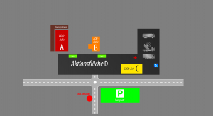 LKWs / PKWs können ab 12:45 Uhr zu den Hallen fahren.
