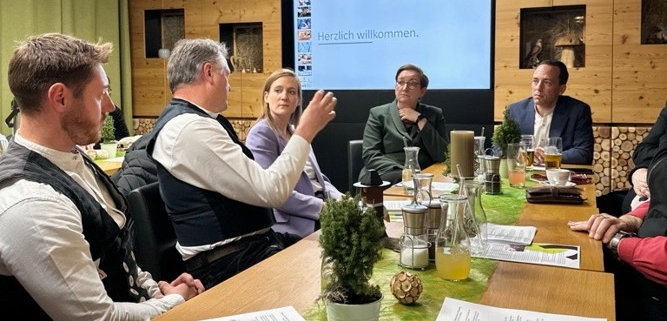 Auch politische Themen fanden ihren Platz: Im Januar war Bundesbauministerin Klara Geywitz im Landkreis zu Gast. Beim Austausch mit Vertretern der Bauinnung und der Zimmererinnung – darunter Stefan Fichtl und sein Stellvertreter Vincent Pröbstl – zeigte sich Geywitz sehr interessiert an den Möglichkeiten des Holzbaus, insbesondere im Hinblick auf Nachhaltigkeit und CO₂-Speicherung.